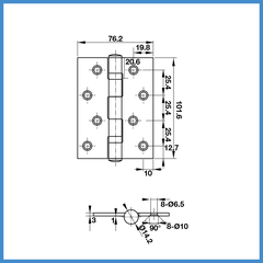 > Kích thước bản lề : 102 x 76 x 3mm