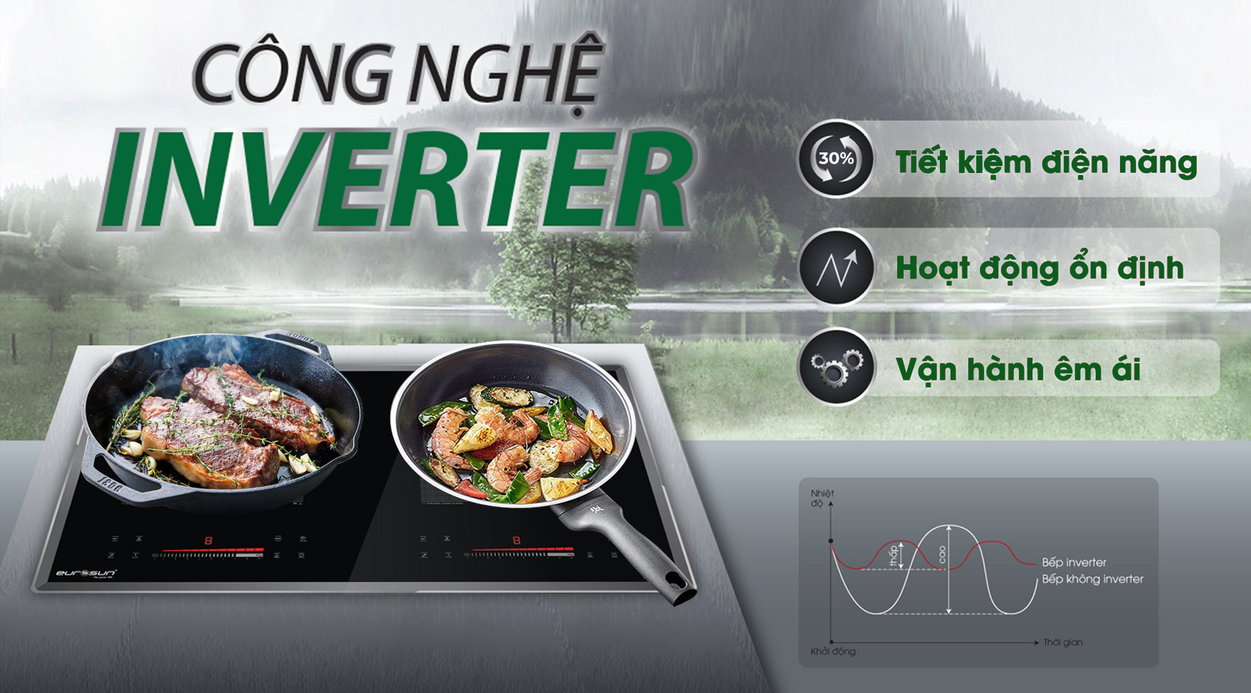 Bếp điện từ Eurosun EU-TE799Pro tiết kiệm 30% điện năng, bởi tích hợp công nghệ biến tần Smart Inverter. Giúp bếp đun nấu duy trì ổn định công suất, với khả năn đun liu riu ở các mức công suất thấp, không bị đóng ngắt liên tục như các bếp thông thường