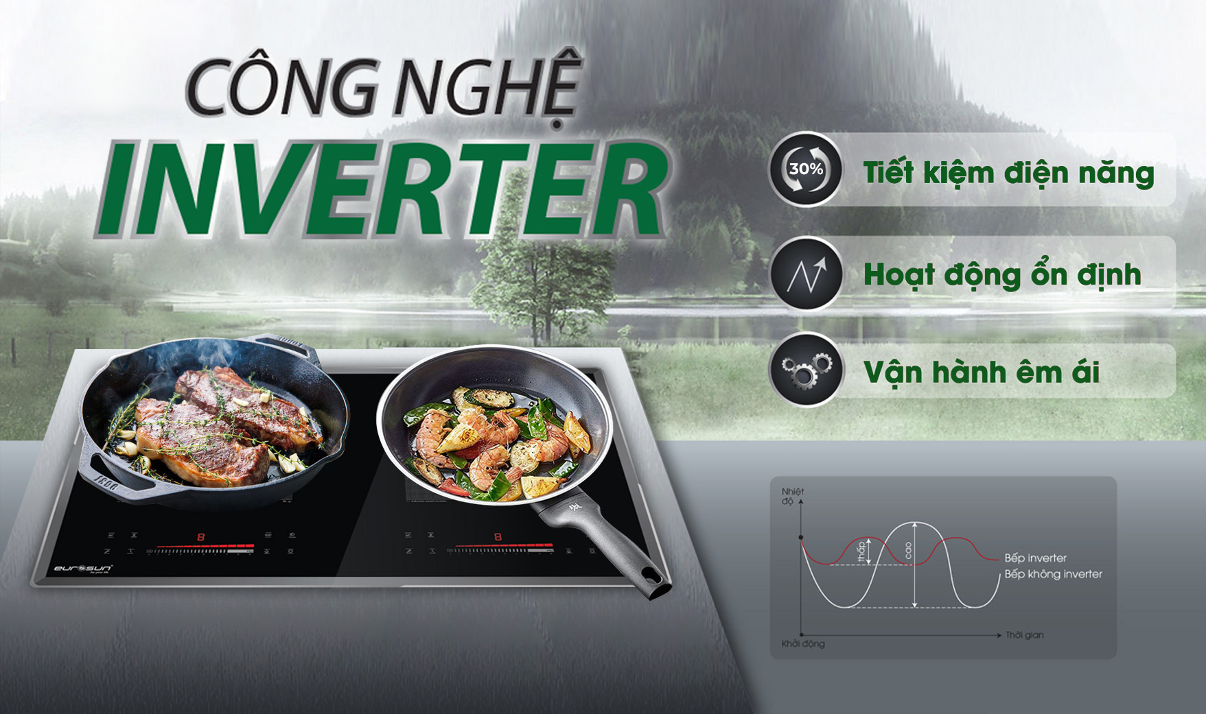 Bếp điện từ Eurosun EU-TE398Pro tiết kiệm 30% điện năng, bởi tích hợp công nghệ biến tần Half-Bridge Resonant type IGBT Inverter. Giúp bếp đun nấu duy trì ổn định công suất, với khả năn đun liu riu ở các mức công suất thấp, không bị đóng ngắt liên tục như các bếp thông thường