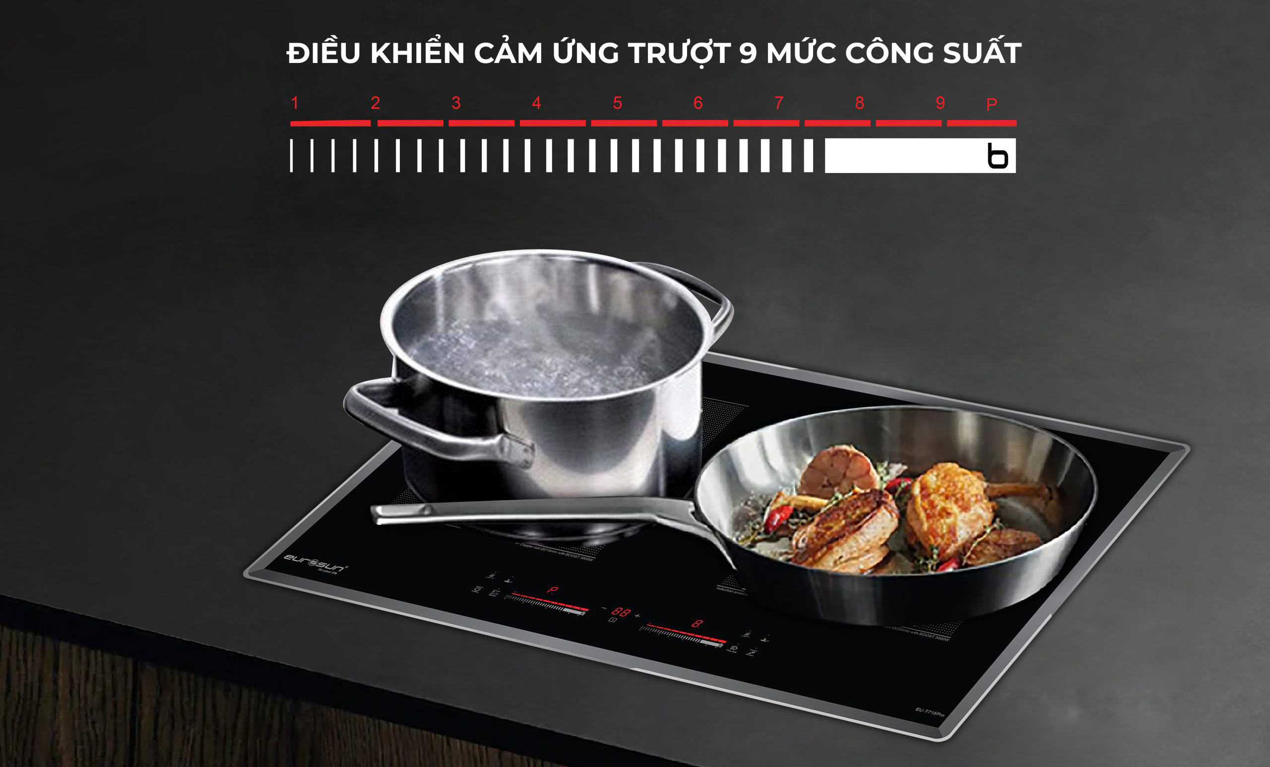 Điều khiển cảm ứng dạng trượt độc lập với 9 mức công suất điều chỉnh chính xác với mức nhiệt mong muốn giúp bạn có những món ăn tuyệt hảo. Bộ phím điều khiển được ứng dụng công nghệ cảm biến điện rung bọt biển siêu nhạy giúp người sử dụng dễ dàng thao tác