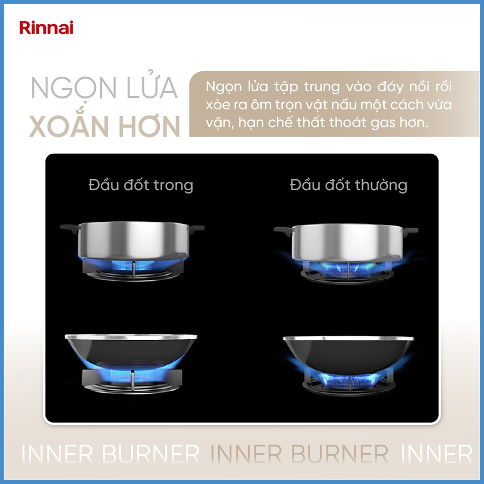 2. Đầu đốt : thép không rỉ, công nghệ đầu đốt trong Inner Burner, hạn chế gió, tiết kiệm gas