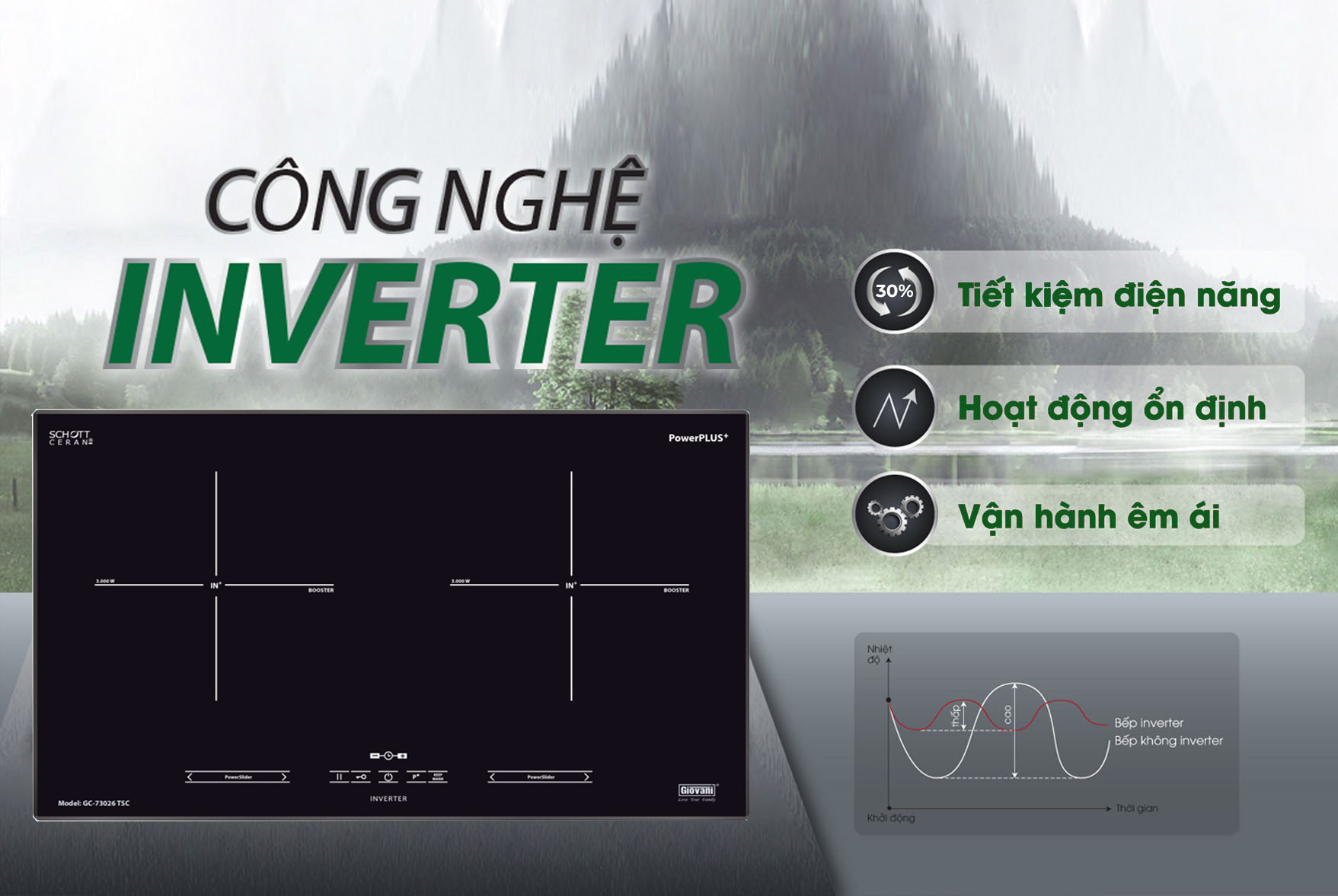 Bếp từ Giovani GC-73026 TSC tiết kiệm 40% điện năng bởi tích hợp công nghệ biến tần Bridge Inverter, cảm biến thông minh đun nấu và giữ liên tục ở mức thấp