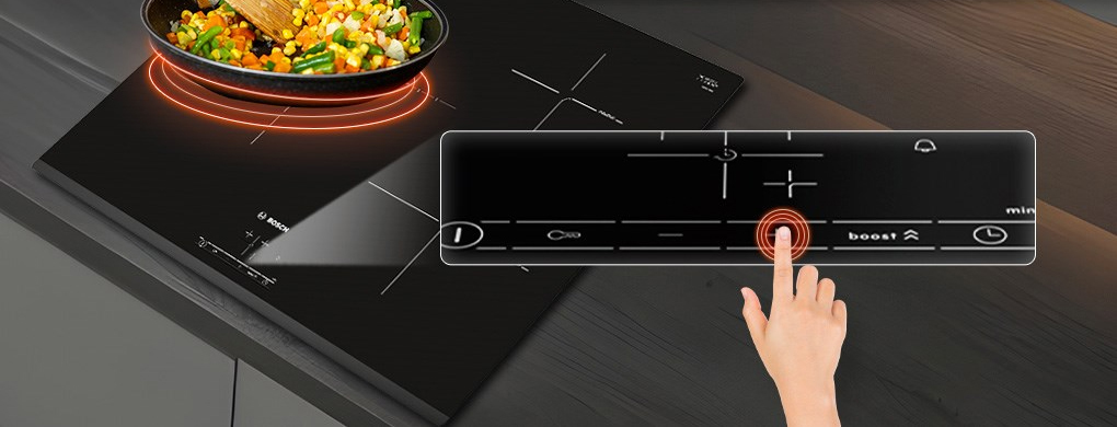 Bảng điều khiển cảm ứng TouchSelect bạn có thể điều chỉnh vùng nấu một cách dễ dàng. Đơn giản chỉ cần chọn mức công suất bạn cần. Các chức năng bổ sung như khởi động nhanh QuickStart và khởi động lại ReStart giúp việc nấu ăn trở nên dễ dàng hơn