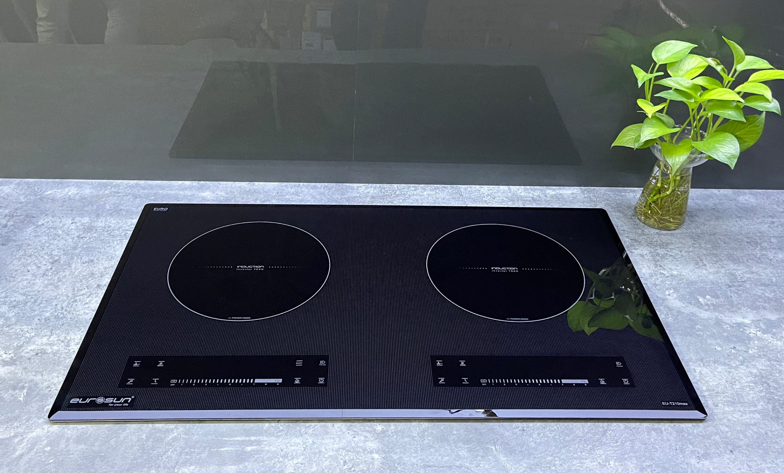 Bếp từ Eurosun EU-T256Max với 2 vùng nấu rộng rãi. Mặt kính Euro Platinum, chịu lực và chịu nhiệt 600 - 1150ºC, vát 4 cạnh sang trọng