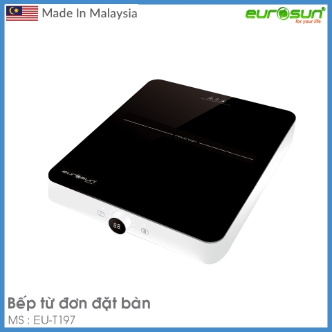 Bếp từ đơn Eurosun EU-T197 với 1 vùng nấu. Mặt kính VitroCeramic chịu lực và chịu sốc nhiệt cao, dễ dàng vệ sinh