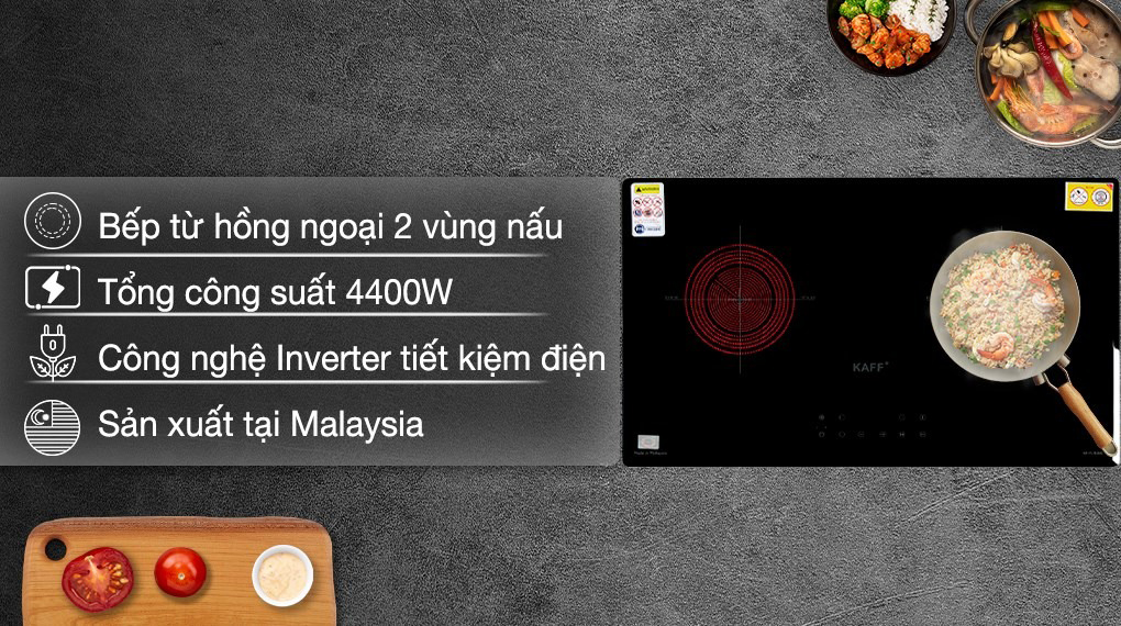 Bếp Từ Kết Hợp Hồng Ngoại Kaff KF-FL105IC, với thiết kế 2 vùng nấu : 1 vùng nấu từ + 1 vùng nấu điện hồng ngoại, lắp đặt âm