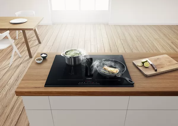 Bếp Từ Kết Hợp Hút Mùi Bosch PVQ731F15E dòng sản phẩm Series 6 tích hợp máy hút mùi vô cùng tiện lợi. Cho phép bạn vừa có thể nấu ăn vừa có thể hút mùi trên chính chiếc bếp của mình một cách dễ dàng