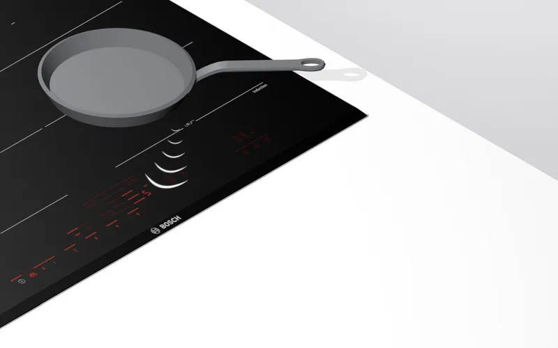 FlexInduction bạn có thể kết hợp 2 vùng nấu thành 1 vùng nấu lớn nóng đều. Bếp sẽ tự nhận diện kích cỡ và vị trí của nồi chảo nằm trong vùng nấu. Dù là bình đun cà phê nhỏ hay khay nướng ngoại cỡ, bếp từ Bosch có thể đun mọi loại xoong nồi, chảo chính xác và hiệu quả