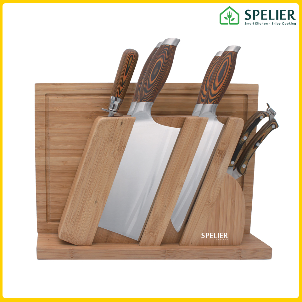 - Kèm 1 thớt làm bằng tre đã tẩm sấy công nghệ cao, an toàn tuyệt đối với sức khỏe và bảo vệ môi trường