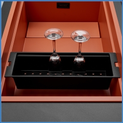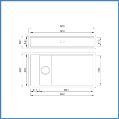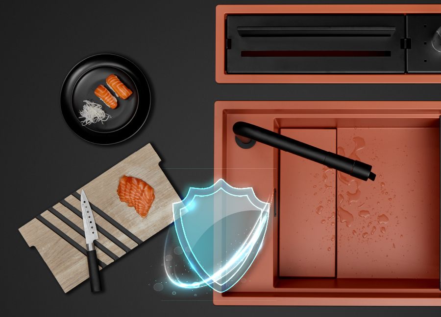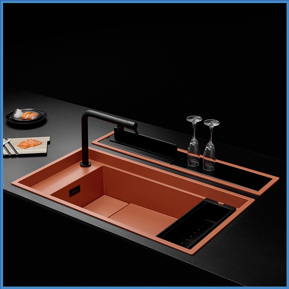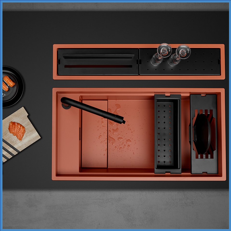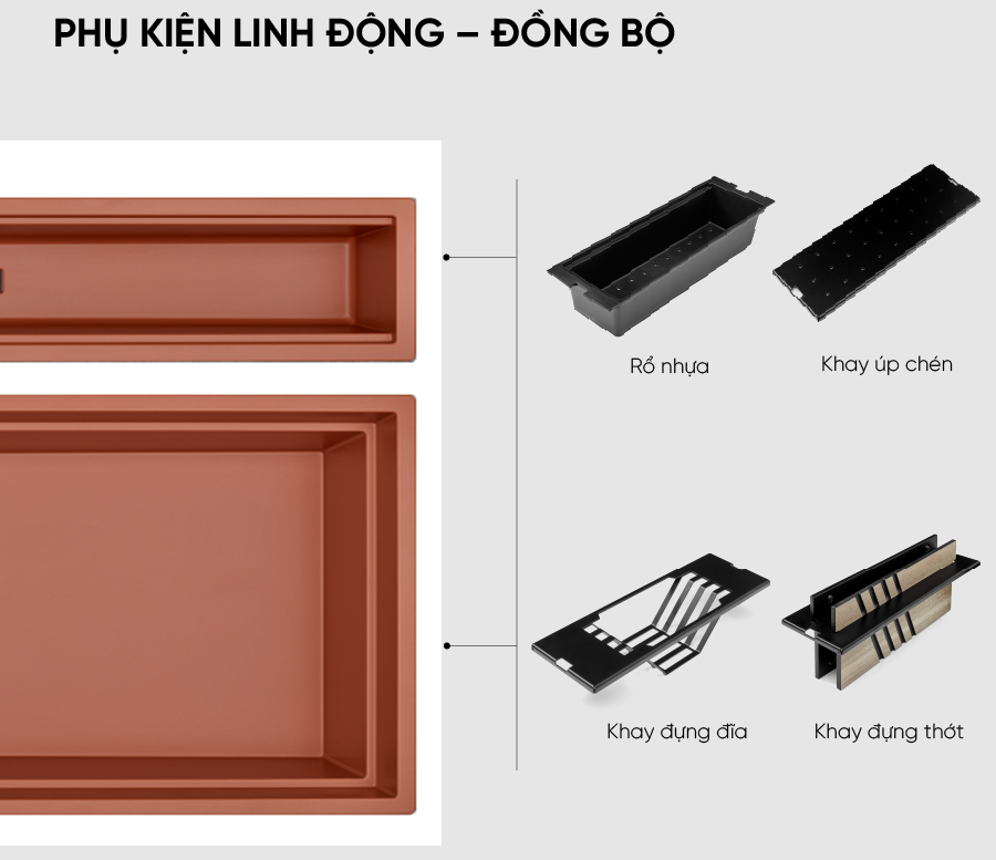 Tinh tế đến từng chi tiết : chậu rửa đơn với lòng chậu rộng cùng với các rãnh chậu dễ dàng lắp đặt các phụ kiện rổ, khay úp chén và khay đựng rổ 1 cách dễ dàng