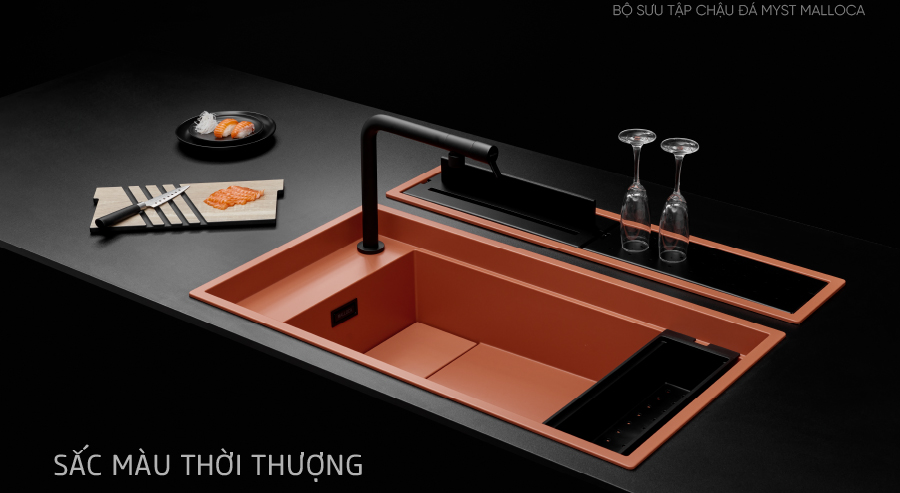 Nổi bật cá tính : với màu cá hồi màu xu hướng nội thất hiện đại, biến không gian bếp tràn đầy năng lượng, nổi bật và cá tính