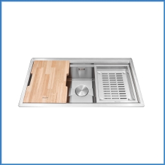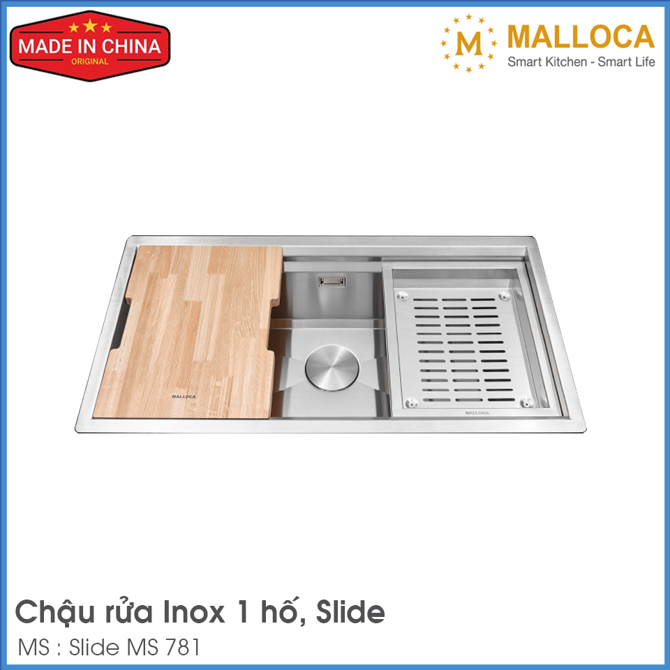Slide - linh hoạt, tiện nghi : đi kèm phụ kiện rổ Inox 304 & thớt gỗ bằng gỗ sồi an toàn khi sơ chế thực phẩm, chuyển động trượt linh hoạt, nhẹ nhàng trên bề mặt chậu
