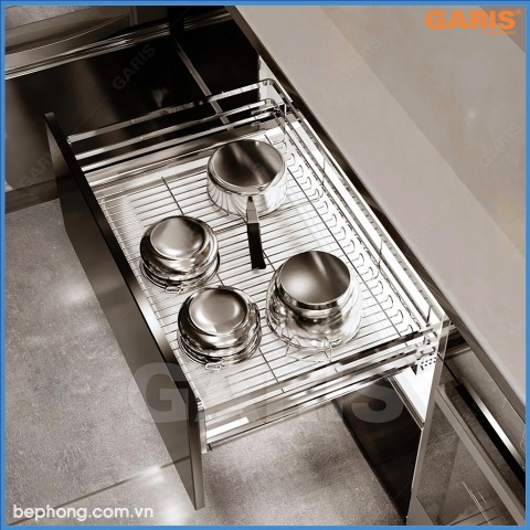 Giá đựng xoong nồi Premium Series Garis dành cho hệ tủ bếp dưới, với nhiều ưu điểm :