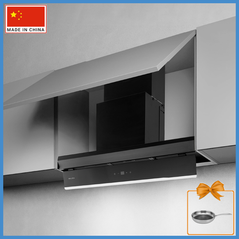 Máy hút khử mùi nhà bếp Malloca Space MH 900SP lắp đặt âm tủ bếp, với thiết kế sơn đen tĩnh điện + kính đen