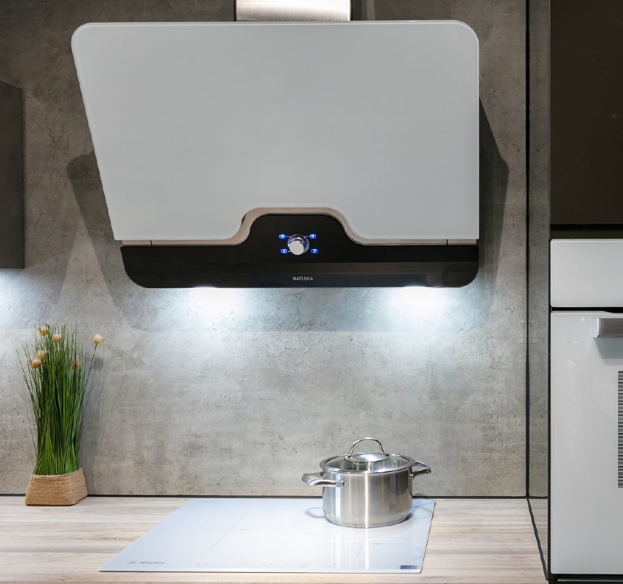 Với thiết kế thời trang và công nghệ tiên tiến, máy hút khói áp tường Malloca DRIVE F-152W mặt kính trắng phối đen sang trọng