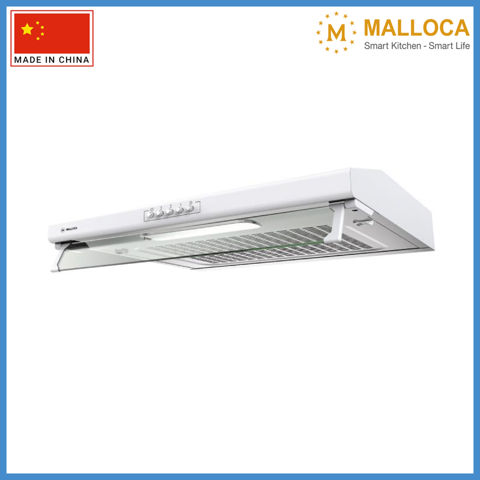 Máy hút mùi Malloca với thiết kế dạng Classic, vỏ máy bằng thép phủ sơn tĩnh điện màu trắng