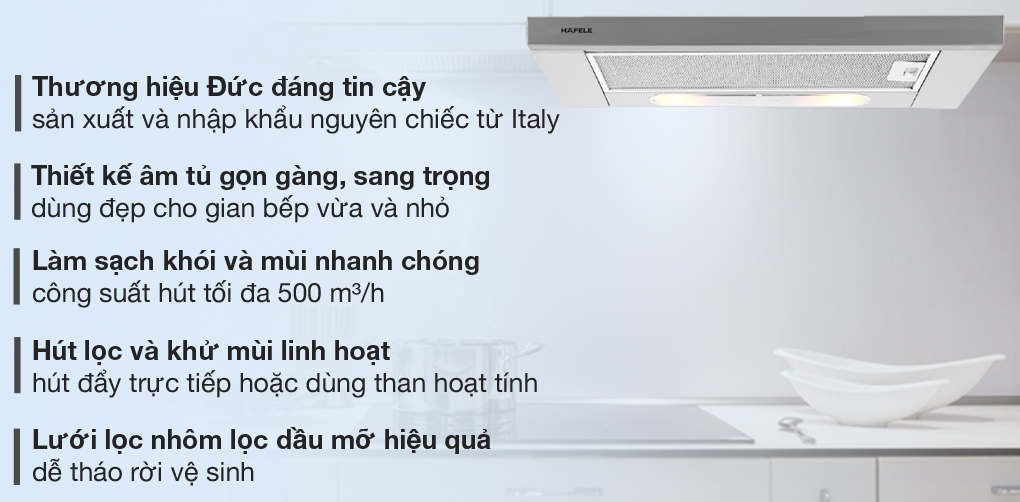 Mẫu máy hút mùi lắp đặt âm tủ kích thước 600mm, chính hãng HAFELE