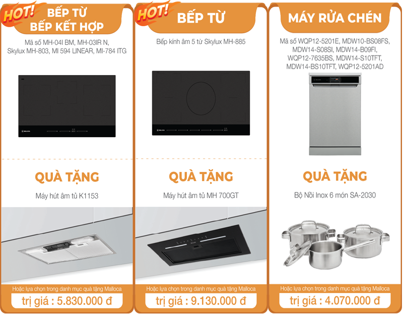 Đối tượng áp dụng : tất cả khách hàng khi mua các sản phẩm thương hiệu Malloca tại hệ thống Showroom Bếp Hồng